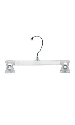 These hangers are molded from K-Resin - a clear break resistant plastic. Our complete selection of break resistant hangers are designed to stand up to the most severe use. Hangers have securely anchored, bright metal swivel hooks. Clip hangers have unique pinch-grip clips for easy insertion and removal of pants and skirts. Dress hangers have bottom loop for showing coordinate outfits.